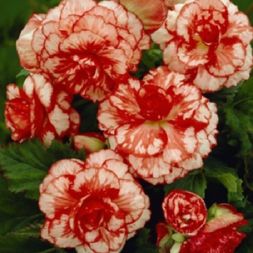 Бегонія Мармурова – найкрасивіший сорт бульбової культури. На білих пелюстках видно безліч червоних прожилок, які роблять суцвіття яскравим і ефектним. Краї пелюсток також пофарбовані червоним тоном, ніж нагадують інший сорт бегонії Камелія. Невисокі кущики з виразними квітками на них чудово виглядають групами вздовж садових доріжок, підійдуть вони і для альпінаріїв, різних клумб. Яскраве забарвлення робить їх помітними на балконі чи терасі, тому бульби добре висаджувати у горщики чи ящики.