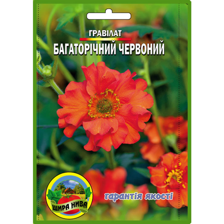Гравілат багаторічний Червоний. Багаторічник, світлолюбивий, але витримує напівтінь, вологолюбний. Насіння висівають в ящики пікірують, можливий осінній посів безпосередньо в ґрунт. Квіти бувають різних кольорів. Довжина квітконосів 30-40 см, дуже широко використовують в кам’янистих та альпійських садах, міксбортерах, рабатках, клумбах. Надзвичайно красива та популярна рослина, нескладна у вирощенн та догляді. Вам обов’язково сподобається він. Тому можна знайти сорт, який впишеться в будь-яку ландшафтну композицію.