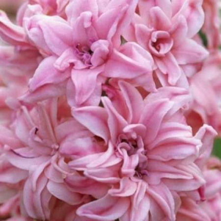Вишуканий аромат і класична форма — махровий гіацинт Rosette формує компактні рожеві суцвіття на міцних стеблах, які тримаються серед темно-зеленого листя. Цей сорт прикрашає сад ранньою весною та дарує щедрий аромат, що довго витає в повітрі.