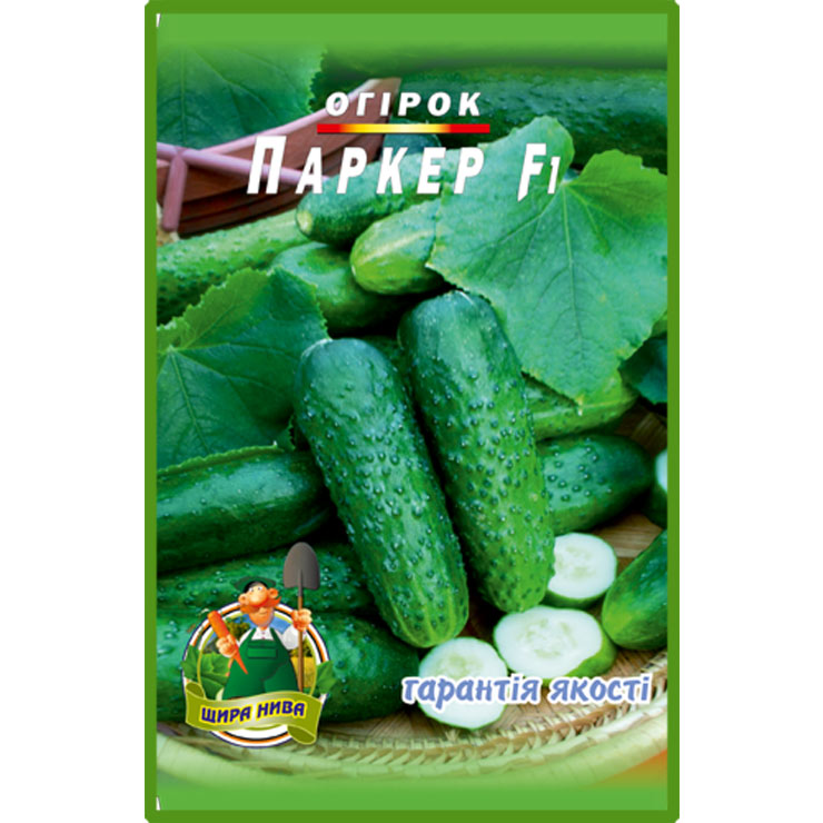 Огірок “Паркер” F1. Ранньостиглий, бджолозапильний гібрид огірка для відкритого грунту та плівкових укриттів з переважно жіночим типом цвітіння . Рослина потужна, характеризується рясним зав’язуванням однорідних за розміром (до 12 см) плодів. Перша зав’язь утворюється над 4-5 листом. Плоди крупнобугорчасті, білошипі, не жовтіють. М’якоть щільна без гречки, відмінного смаку. Стійкий до високих температур, борошнистої роси. Насіння ТМ Наша Грядка реалізуються оптом і в роздріб