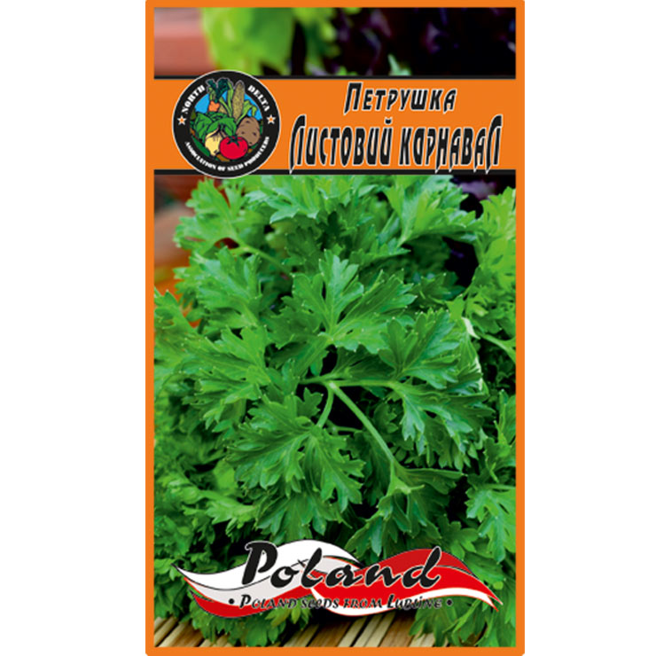 Петрушка Листовий карнавал (насіння). Ранньостиглий сорт з інтенсивним відростанням зеленої маси, (вегетаційний період 65-75 днів). За сезон отримують 4 – 5 срезок листя. Листя ніжні, солодкі, ароматні, з високим вмістом вітаміну С. Коренеплід великий, рівний, білий, довжиною 20 – 25 см. Сорт холодостійкий, добре переносить зиму на відкритому грунті без укриття, стійкий до грибкових хвороб. Рослина світлолюбна, і добре росте в наполовину затемненних місцях. Для того щоб отримати ранній урожай петрушки – сіють в кілька термінів: ранньої весни в другій половині квітня і під зиму в листопаді.