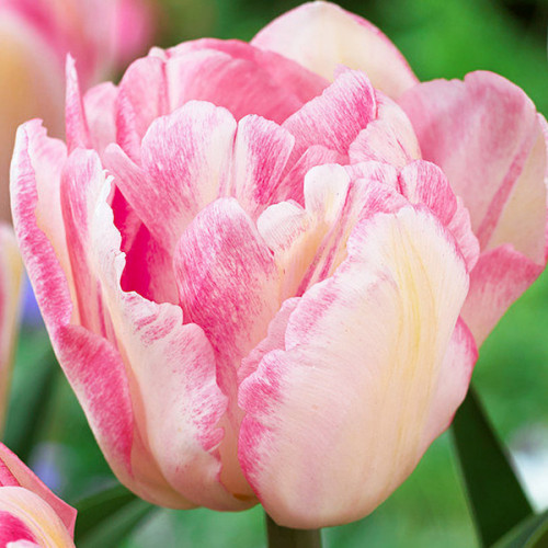 Тюльпан Фокстрот (Tulip Foxtrot) клас: Махрові .Форма: піоновидна. Забарвлення: кремово-рожеве. Висота келиха: до 9 см. Діаметр келиха: до 6 см. Висота рослини: до 40 см. Терміни цвітіння: – середина травня. Квітка класична, велика. Розмножується відмінно. Дає чудову вигонку.