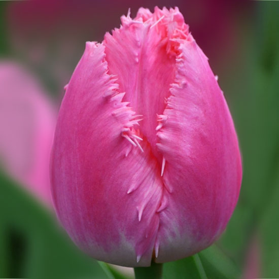 Тюльпан Кашарель (Tulip Cacharel) клас: Бахромчаті. Форма: бокаловидная. Забарвлення квітки: яскраво-рожеве з густою бахромою. Висота келиха: до 7 см. Діаметр келиха: до 5 см. Висота рослини: 40-60 см. Терміни цвітіння: кінець квітня-початок травня. Квітка класична, велика. Розмножується відмінно. Дає чудову вигонку.