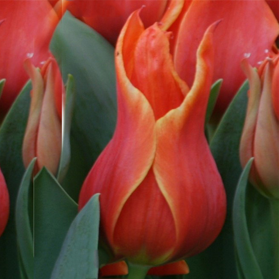 Лілієцвітні тюльпани (Tulipa lilyflowering) – легко впізнавані, так як своєю формою нагадують квітку лілії – витончені келихи з відгинаючимися назовні і загостреними на кінцях пелюстками. Лілієцвітні тюльпани досить високорослі (до 50-60 см у висоту), мають міцні квітконоси і квіти різноманітного забарвлення. Цвітуть Лілієцвітні тюльпани в другій половині травня, і незважаючи на свою нечисленність, широко використовуються для озеленення садів і парків, для зрізання, а деякі сорти – для вигонки. Тюльпан Кобра / Tulipa Cobra