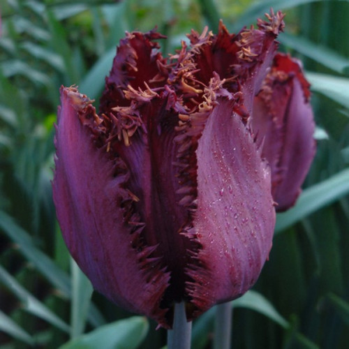 Бахромчаті тюльпани (Tulipa crispa, Tulipa fringed) – клас, який зібрав в себе сорти тюльпанів різного походження, об’єднані одною головною ознакою, ігольчаста бахрома по краям пелюсток, що нагадує іній. Висота бахромчатих тюльпанів може варіюватися від 50 до 80 см. Забарвлення квіток зустрічається найрізноманітніше: від білого до фіолетового до темно-шоколадного. Залежно від того, які класи тюльпанів використовувалися при виведенні того чи іншого сорту – бахромчаті тюльпани, розрізняються за розміром квітки, термінами цвітіння і призначенням рослин. Тюльпан Кубан Найт (Tulip Cuban Night)