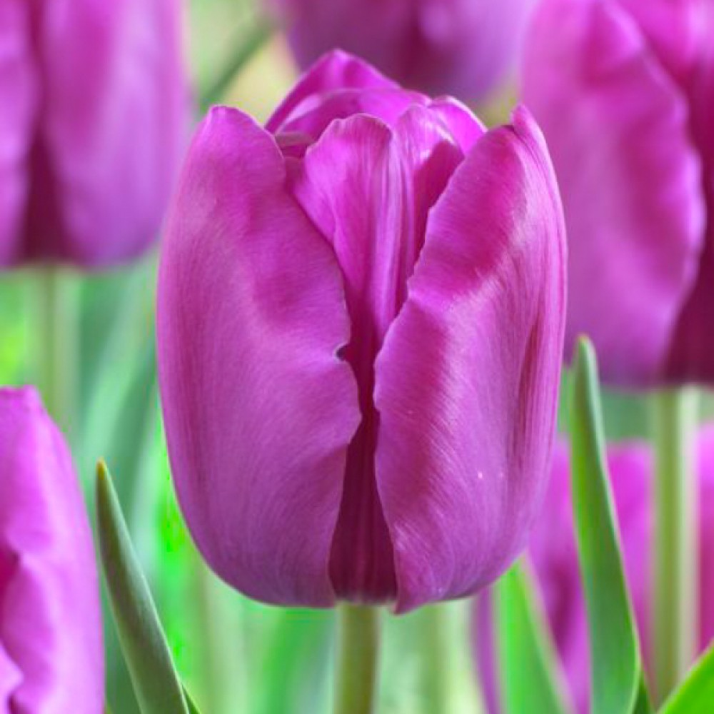 Тюльпан Мілка (Tulip Milka) клас: Тріумф. Форма: келихоподібна. Забарвлення квітки: фіолетовий. Висота келиха: 8-10 см. Висота рослини: 40-60 см. Терміни цвітіння: квітень-травень.
