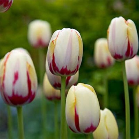Прості пізні тюльпани (Tulipa single late) – досить високорослі (60-75 см) і потужні, мають великі квіти келихоподібної форми з квадратною основою і широкі тупокінцеві пелюстки. Забарвлення простих пізніх тюльпанів може бути найрізноманітнішим: від білої до чорної, від ніжно-рожевого до пурпурного, а багато сортів мають двобарвне забарвлення. Цвітуть прості пізні тюльпани в середині травня і мають високий коефіцієнт розмноження. Прості пізні тюльпани широко використовуються в озелененні, деякі сорти добре піддаються тій, що вигнала, а завдяки міцним квітконосів – гарні для зрізання.