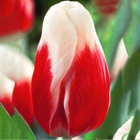 Тюльпан Роман Емпір (Tuliр Roman Empire) »клас: Тріумф. Форма: бокаловидная. Забарвлення: яскраво-червоне з рясною білою облямівкою. Висота келиха: до 9 см. Діаметр келиха: до 7 см. Висота рослини: до 60 см. Терміни цвітіння: – початок травня. Квітка класична, велика. Розмножується відмінно. Дає чудову вигонку.